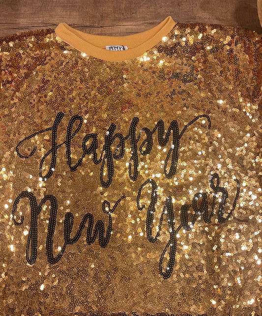 Gold Sequins 'Happy New Year' Tunic - One Size