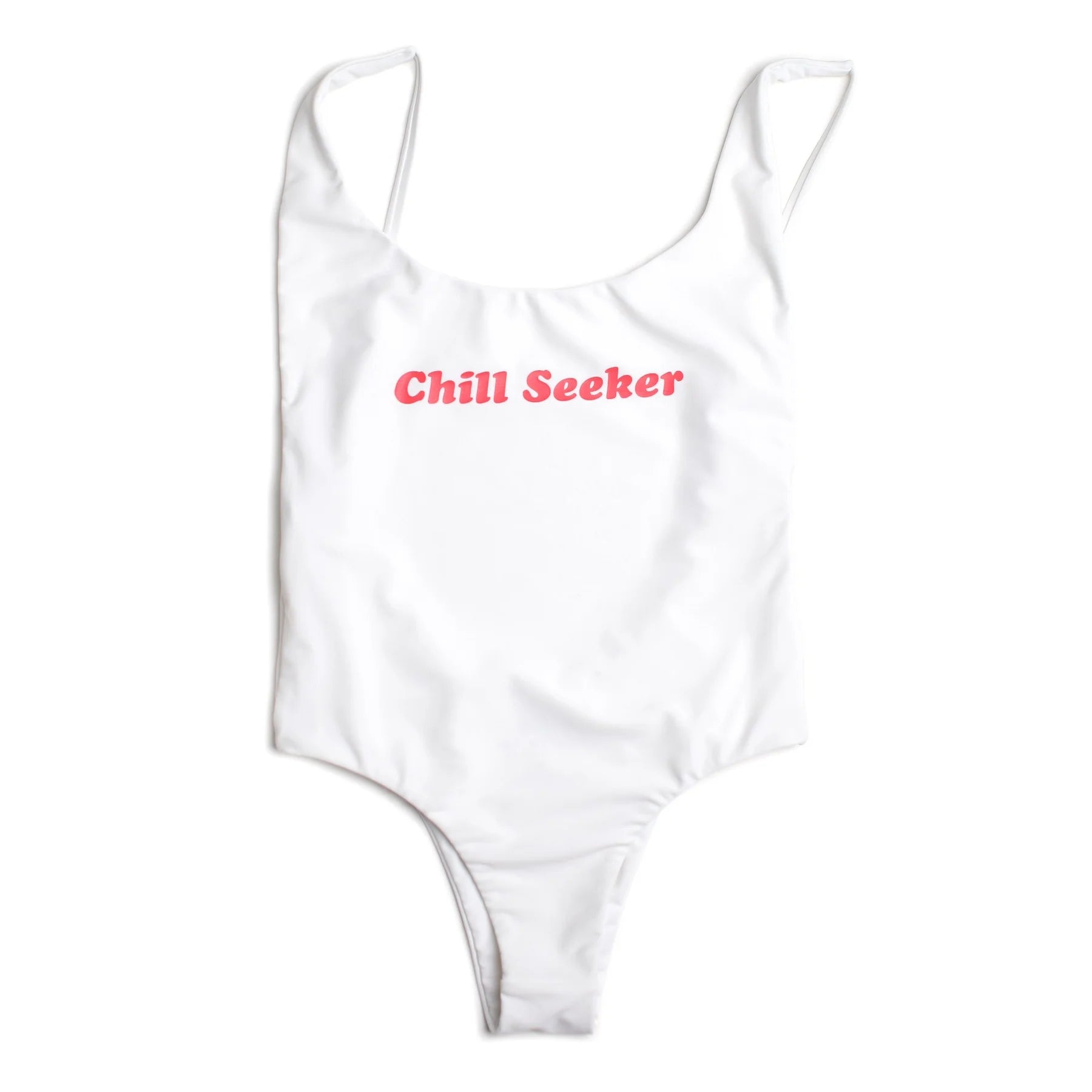 "Chill Seeker" one piece swimsuit with a low back scoop in mustard yellow and white